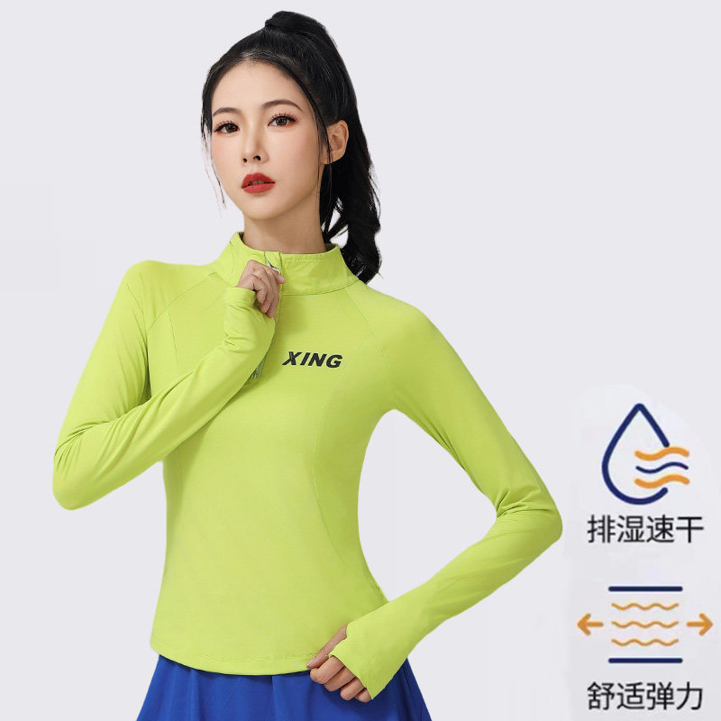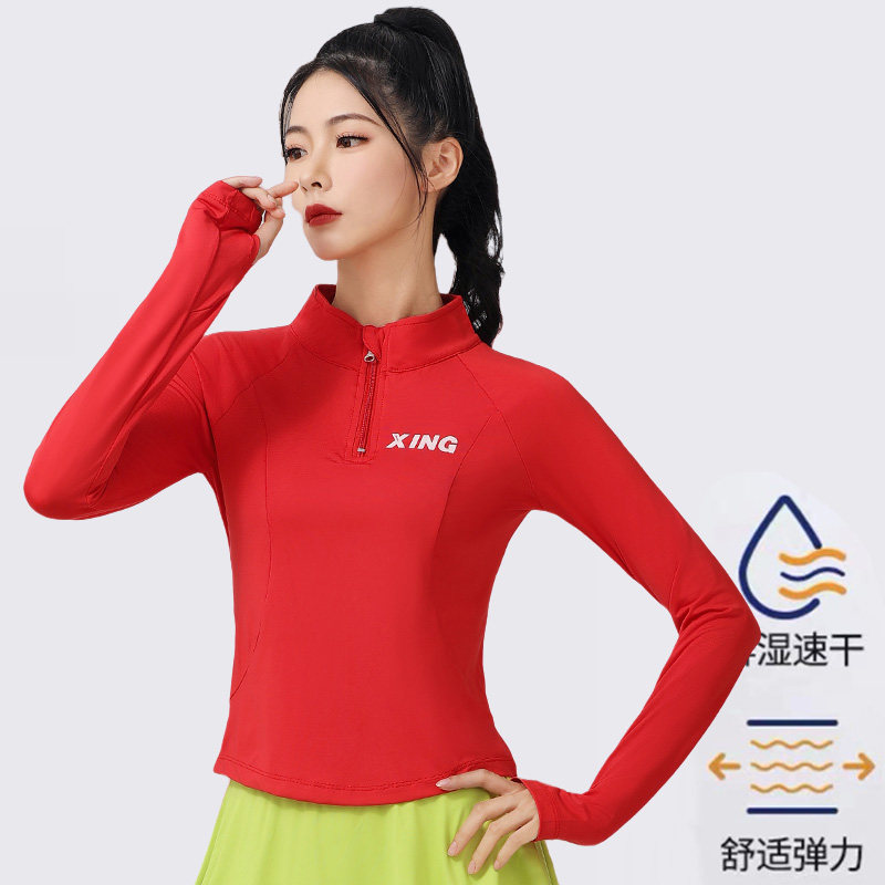 速干运动健身上衣跑步跳操大码 晨练服广场舞跳舞衣服团体半拉链女