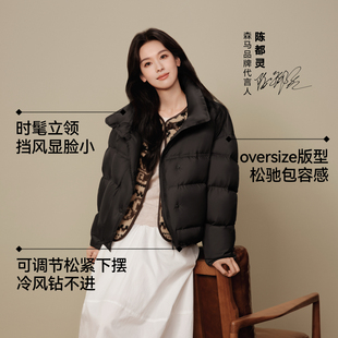 外套小个子加厚立领面包服正品 防水鹅绒短款 新款 森马羽绒服女冬季