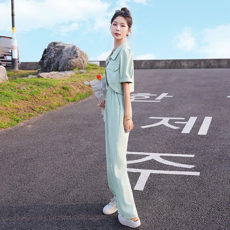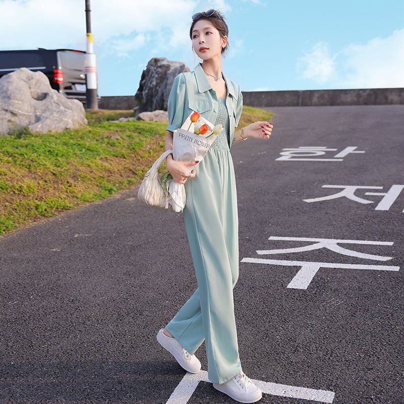 雪纺小个子气质阔腿连衣裤 夏季 韩版 女夏装 两件套 吊带连体休闲套装