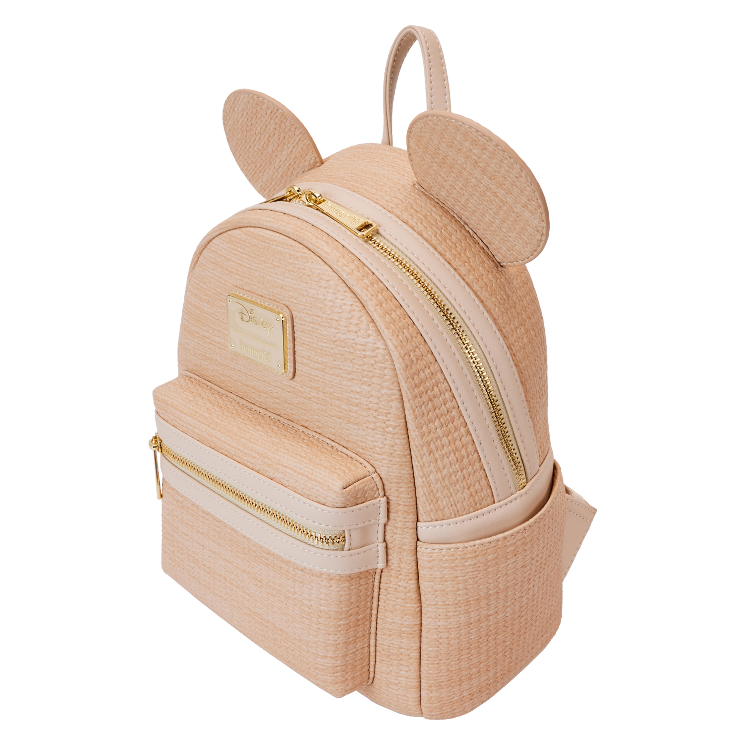 Loungefly迪士尼米老鼠米奇正版 周边双肩包女生编织纹理迷你背包