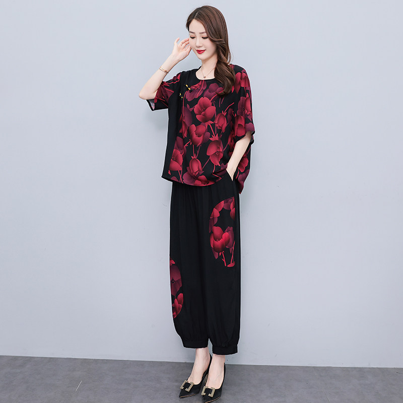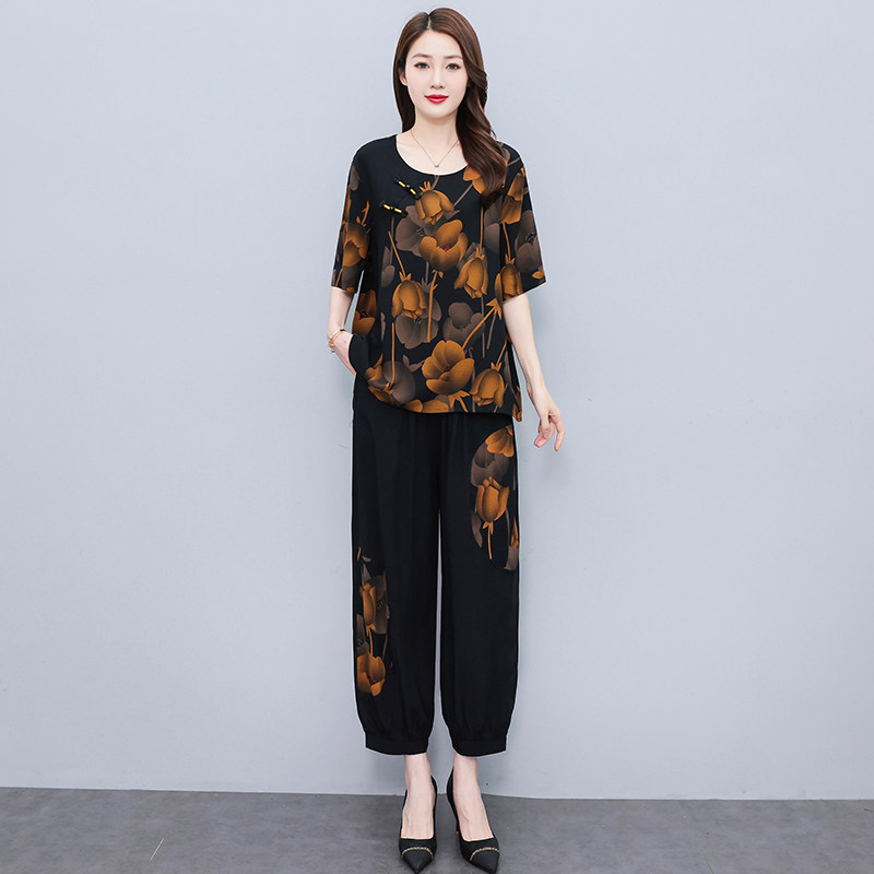 妈妈九分裤 2026新款 遮肚大码 宽松薄款 两件套 中老年套装 短袖 女夏季