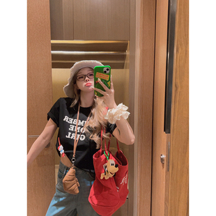 T恤女夏韩系宽松遮肉显瘦时髦百搭打底衫 短袖 白色字母短款 Yukiss