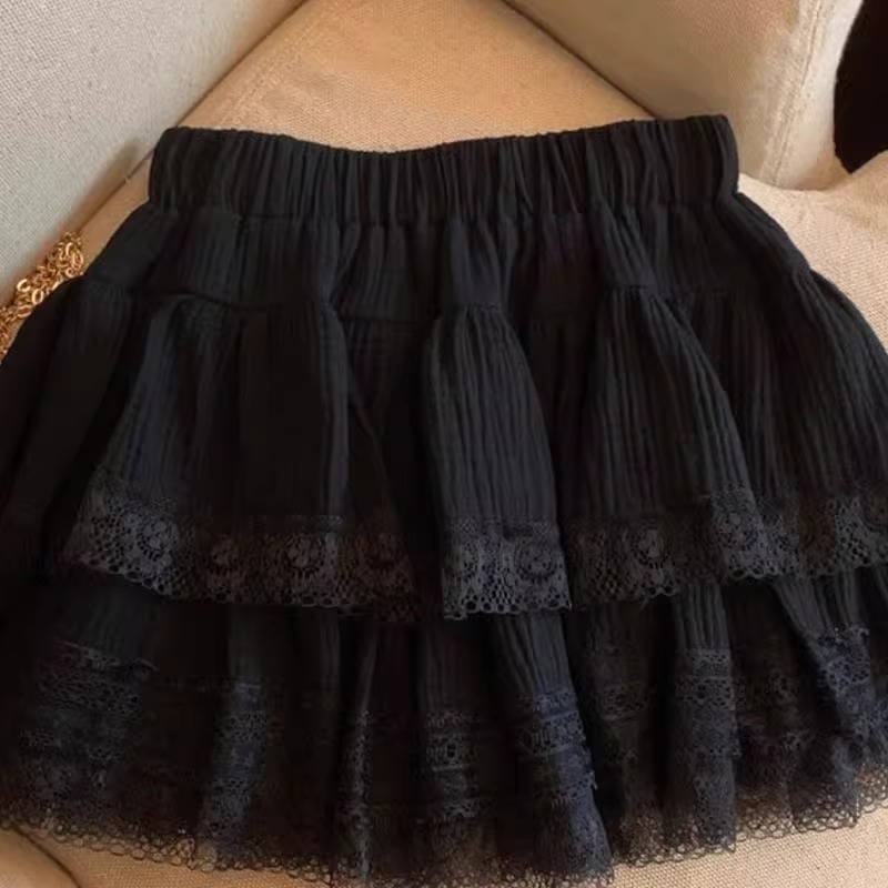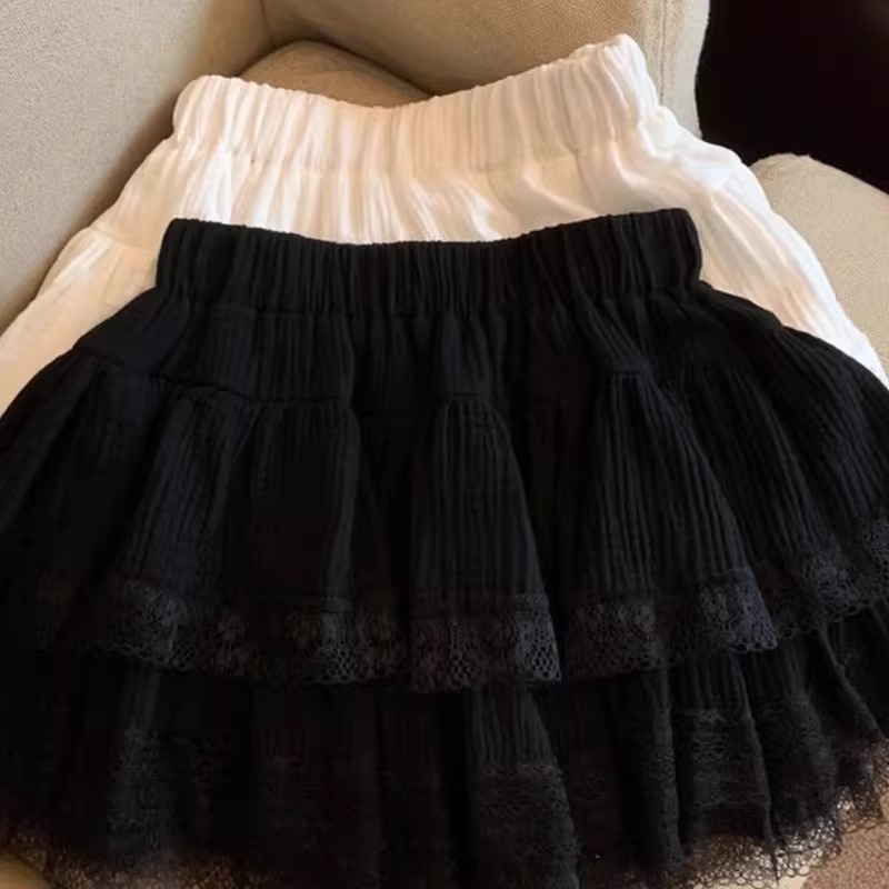大码 小个子公主蓬蓬裙短裙子 白色a字蕾丝蛋糕裙半身裙女2025秋季