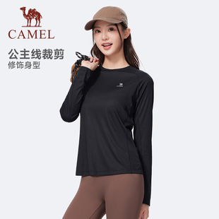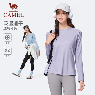 骆驼运动长袖 户外速干衣跑步健身瑜伽服内搭上衣 T恤女士2025夏季