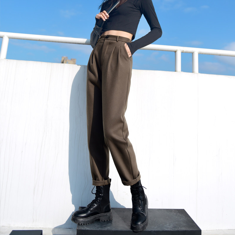 烟管裤 高腰哈伦裤 复古休闲西装 宽松高级感垂感显瘦老爹裤 子 女秋季
