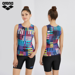 arena阿瑞娜女士炫彩融韵健身高弹抗氯分体无袖 平角泳衣
