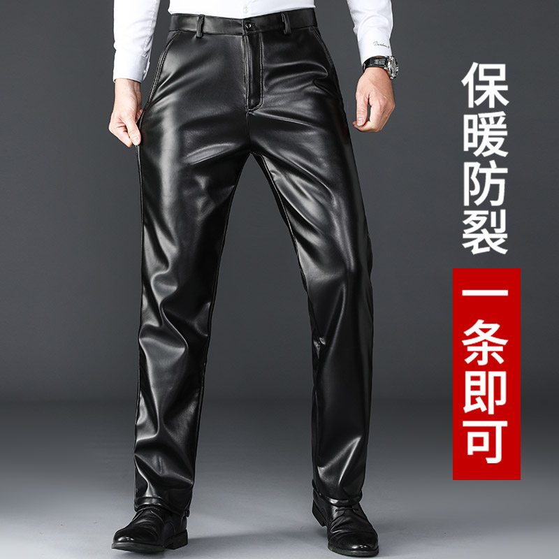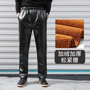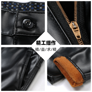子工作裤 秋冬中老年皮裤 男摩托车防风防水宽松加绒加厚机车pu皮裤
