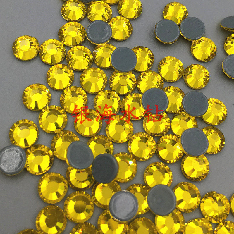 柠檬黄平底烫钻圆形玻璃仿奥胶底钻拉丁服装 包贴钻 烫底钻舞蹈服鞋