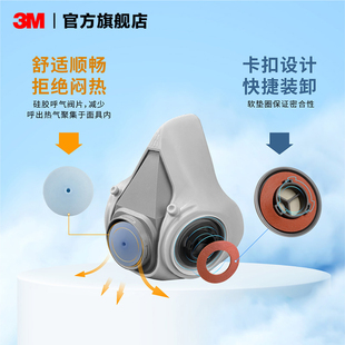 3M防毒面具6200面罩防粉尘喷漆装 修甲醛农药防护防化工酸性气体
