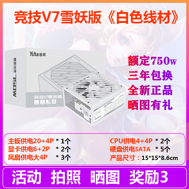 驿晨宇玄武500Kill电脑电源550V4白色650W主机电源500W台式 机ATX