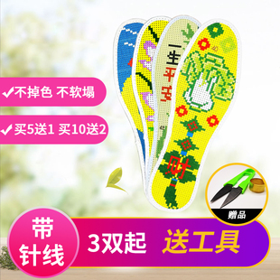手工刺绣男女半成品精准印花十字绣鞋 垫棉正格针孔绣花自绣5双装