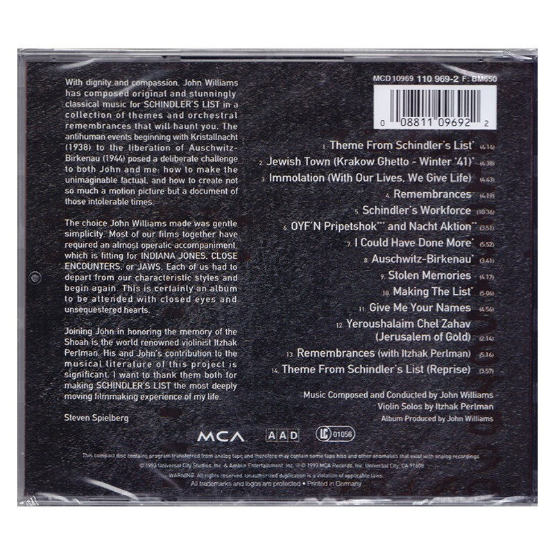 辛德勒 进口 名单 电影原声带 约翰威廉姆斯 进口CD唱片 原装