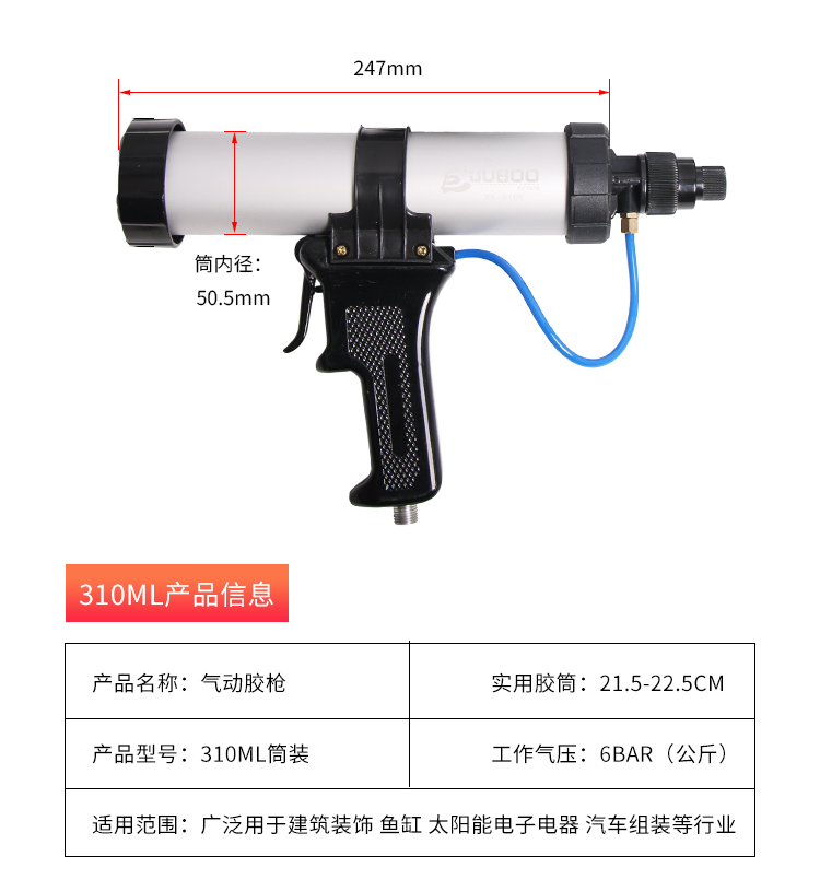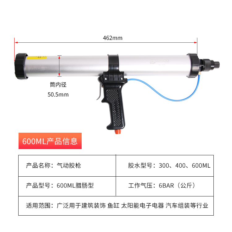 JUBOO巨柏气动打胶枪玻璃打胶枪硅胶枪加长软胶枪310 600ML 400