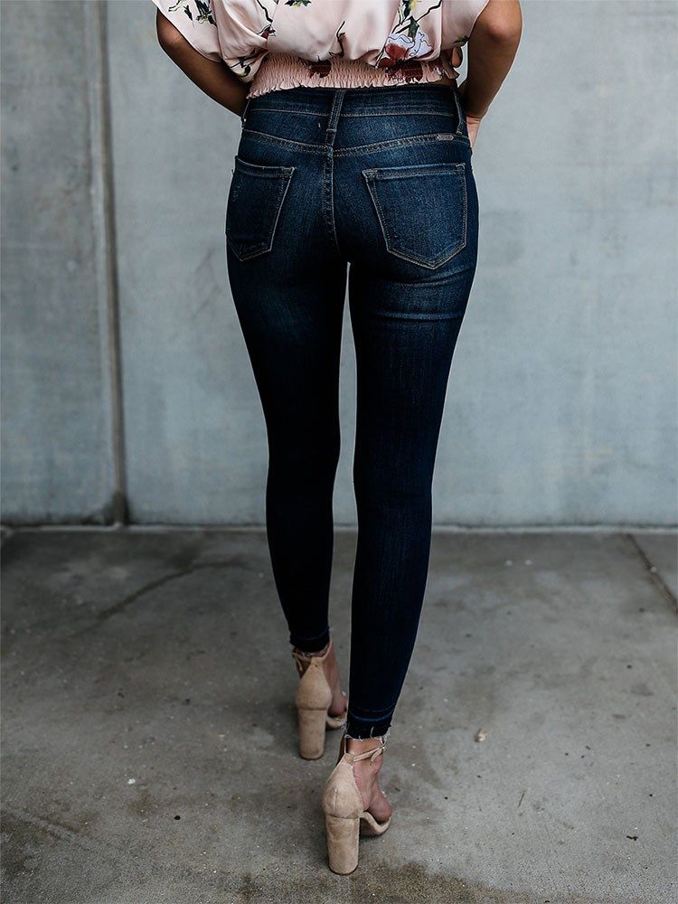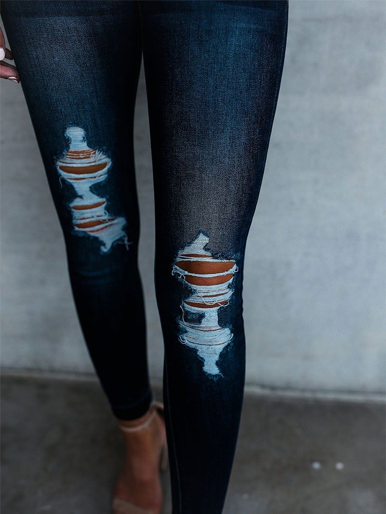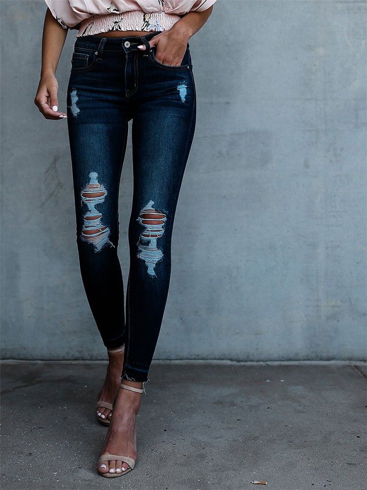 女jeans 显瘦牛仔长裤 women 深色破洞小脚裤 速卖通亚马逊欧美修身