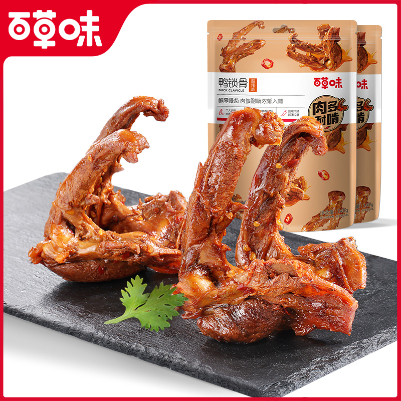 百草味鸭锁骨140g鸭架麻辣卤味肉类零食网红小吃 满减