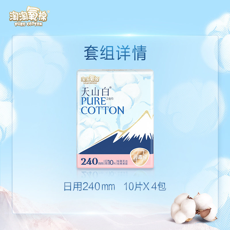 淘淘氧棉400片天山白消毒级纯棉卫生巾护垫迷你巾日用夜用姨妈巾