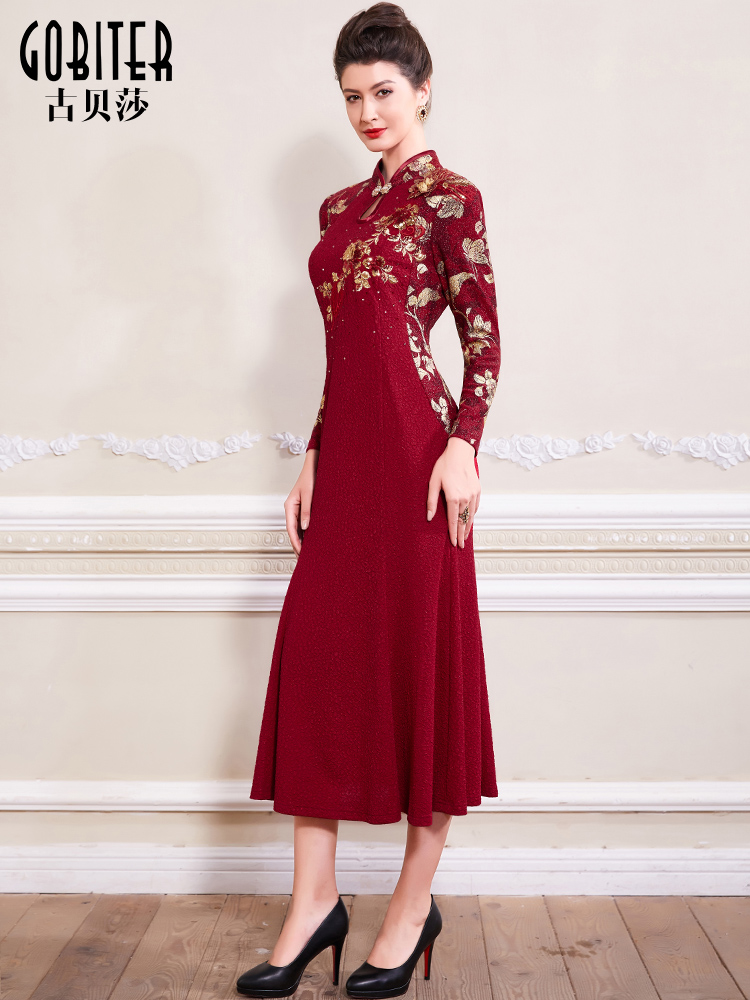 古贝莎高端旗袍敬酒服宴会礼服结婚阔太太喜婆婆妈妈装 连衣裙 大码