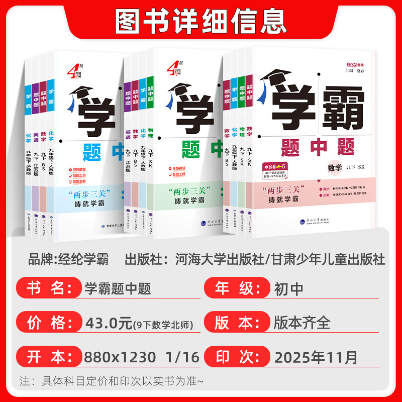 2025秋学霸题中题提七上八上九年级下册数学苏科版 物理英语译林版