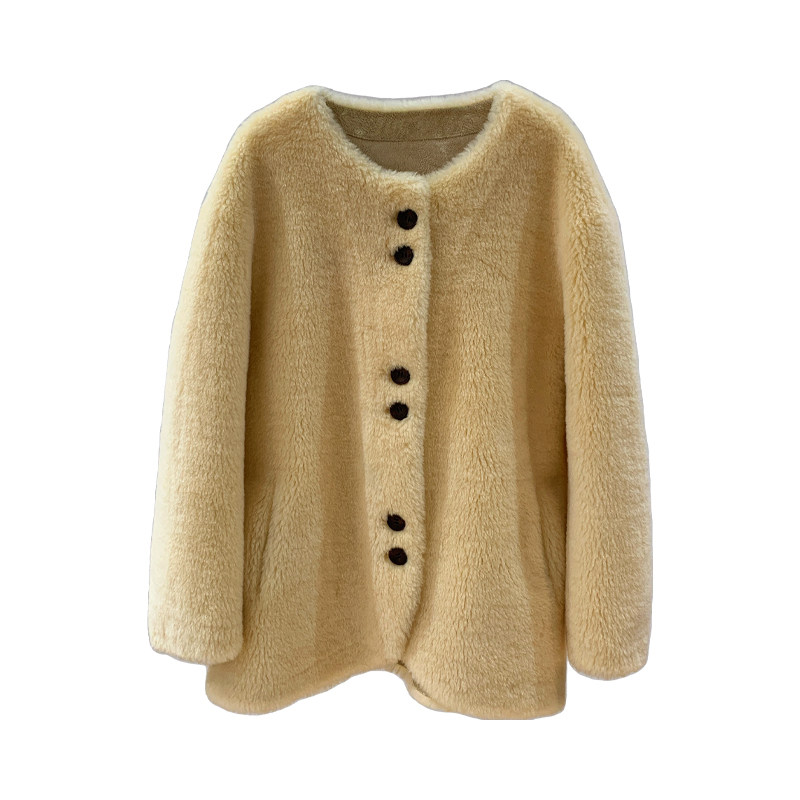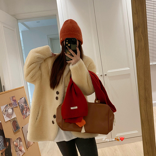 小香风2025新款 獭兔毛加厚牛角扣 皮草羊羔毛外套女皮毛一体秋冬季