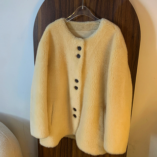 羊羔毛皮毛一体中长款 显瘦大上衣 仿皮草外套女高级感复古宽松冬季