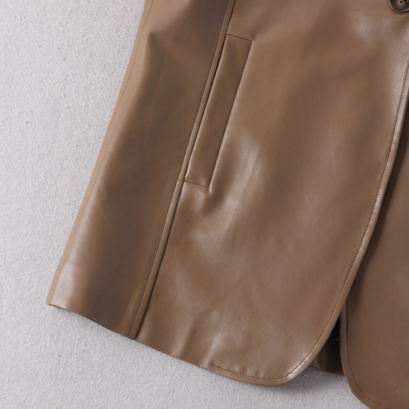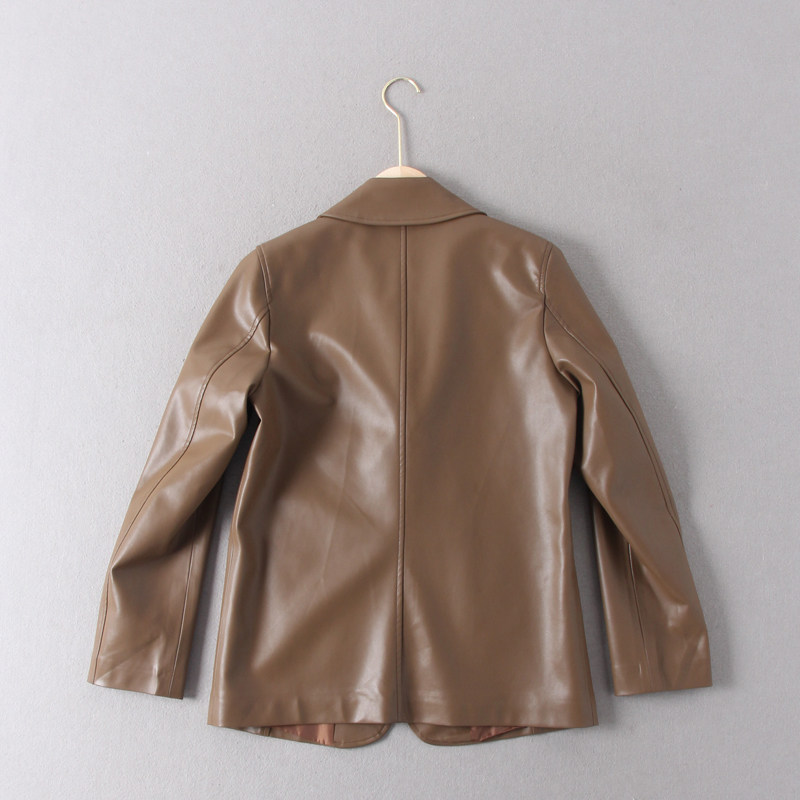 外套 领一扣PU皮皮衣西装 出老美单原单女款 帅气复古时髦西装