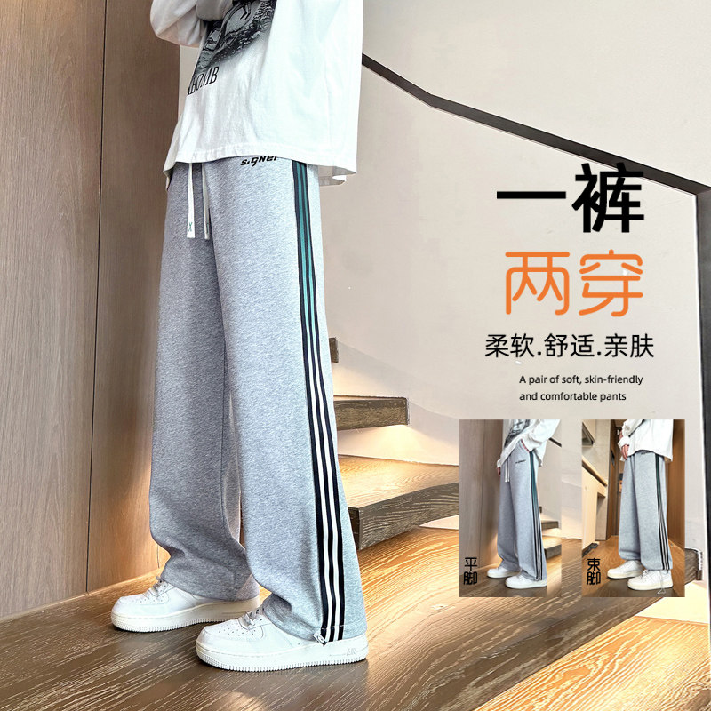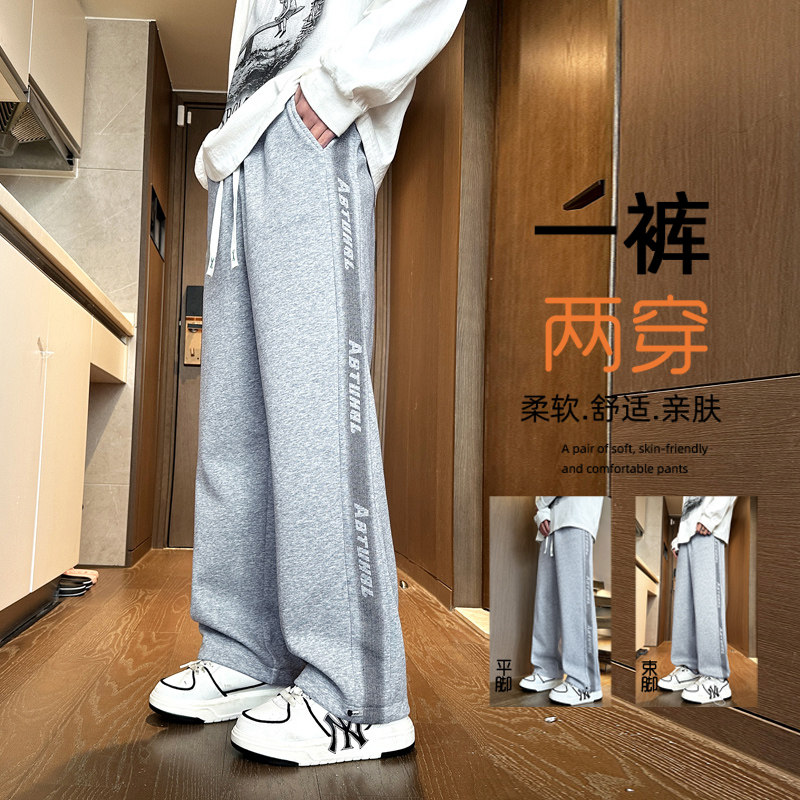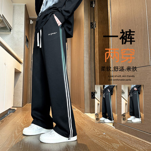 加绒加厚初中学生宽松大童潮牌运动裤 子2025新款 青少年男裤 秋冬季