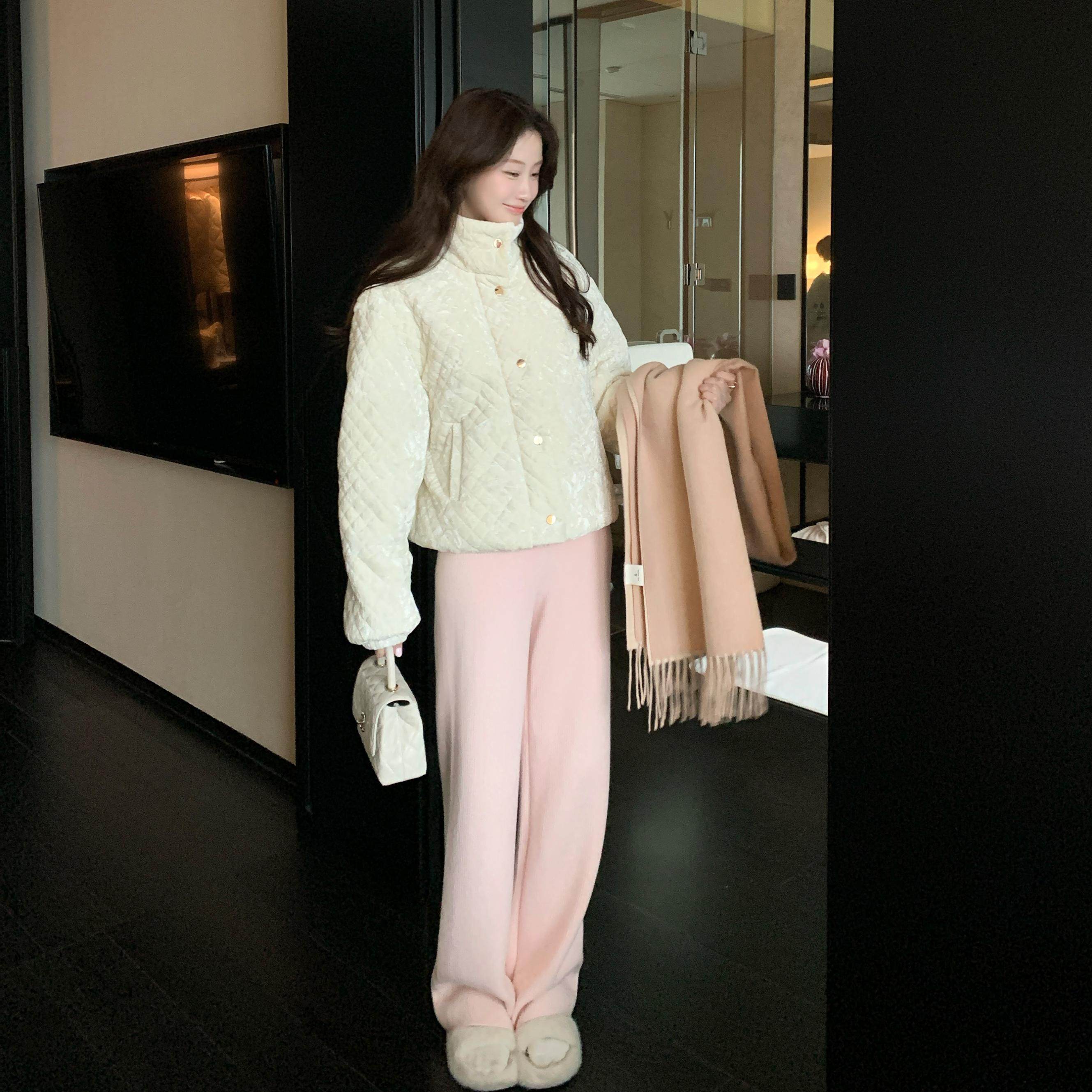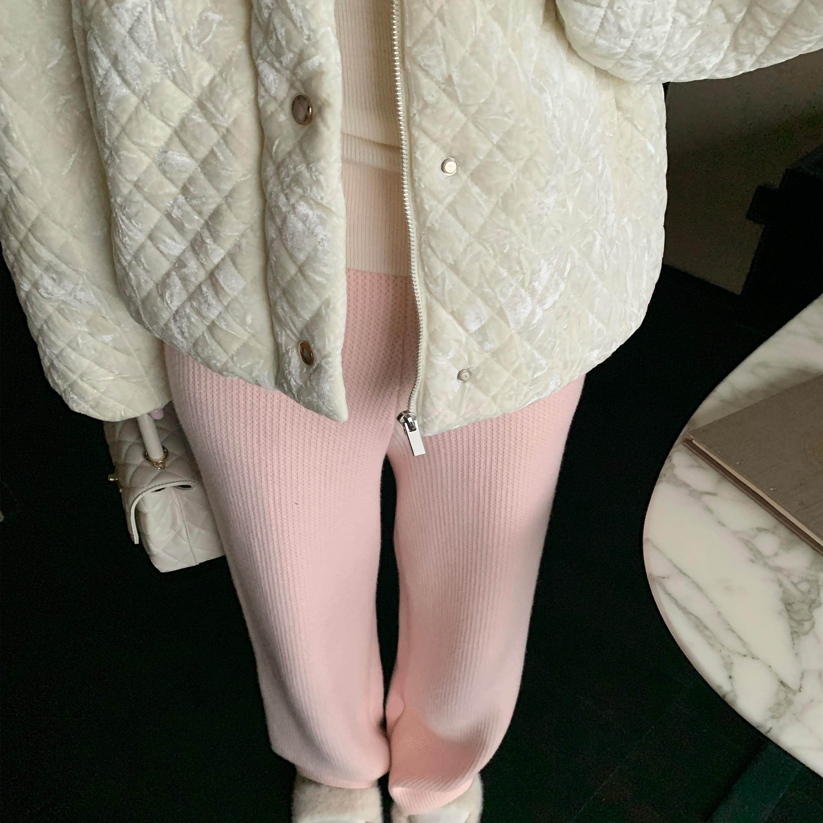 百搭直筒休闲裤 2色加绒宽松垂顺针织裤 蜜桃奶糖 JeJuna炸鸡欧尼