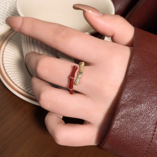 红色竹节戒指女轻奢高级感巨好看 小众设计新年旺财食指环本命年