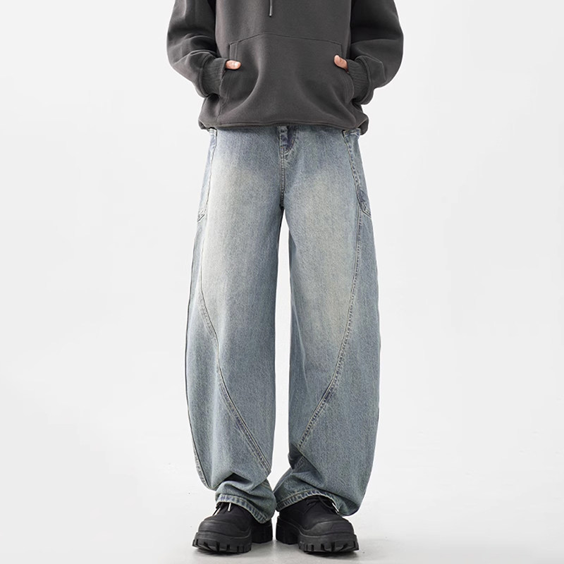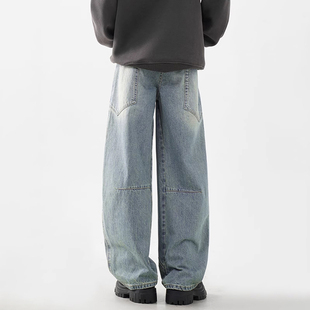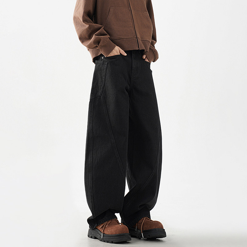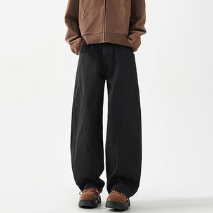 设计感香蕉镰刀裤 美式 春秋ootd穿搭宽松阔腿裤 男款 黑色弯刀牛仔裤