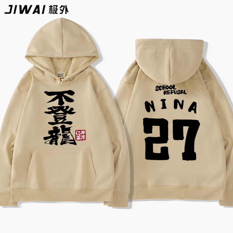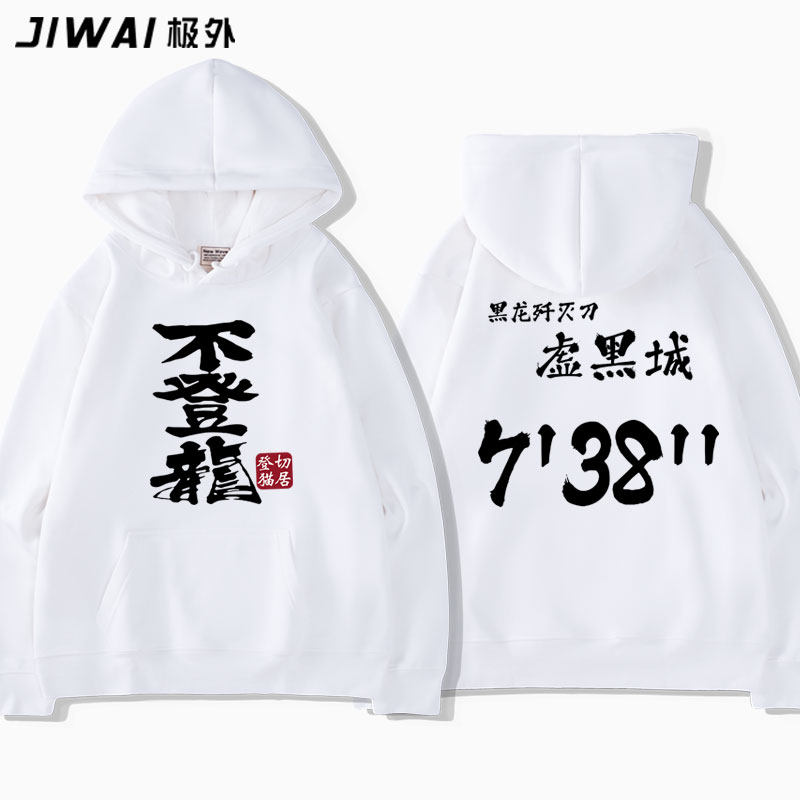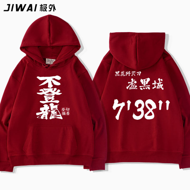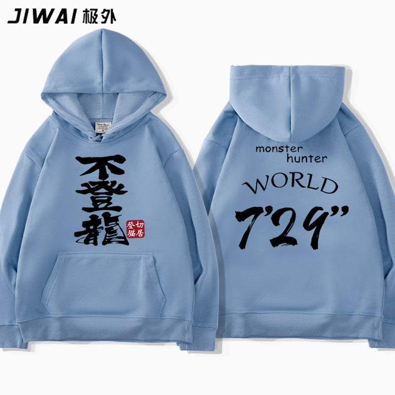 JHYQ净化眼球美式 加绒卫衣男秋冬宽松上衣 字母400G荆棘印花连帽衫
