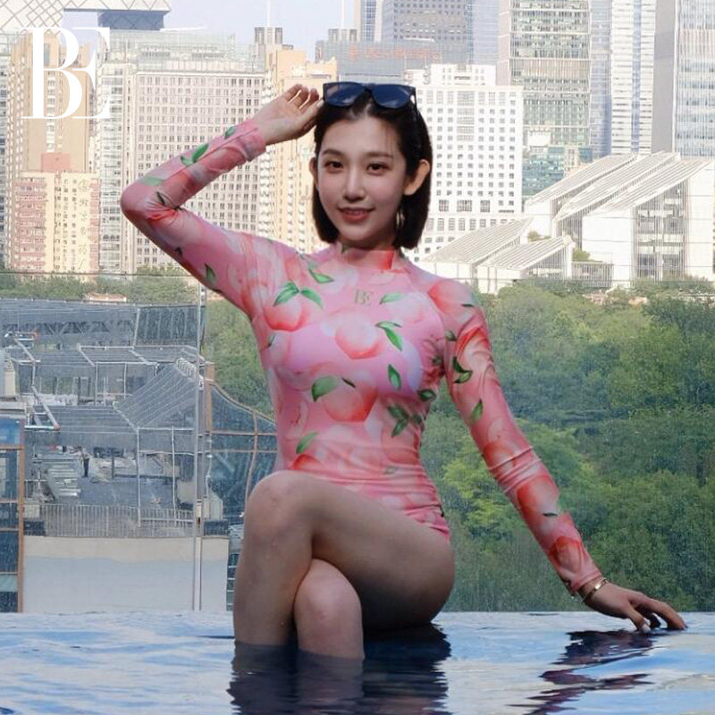 BE范德安时尚 系列女士连体泳衣纯欲蜜桃性感露背冲浪游泳竞速