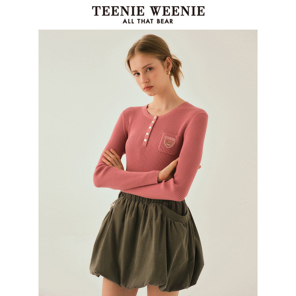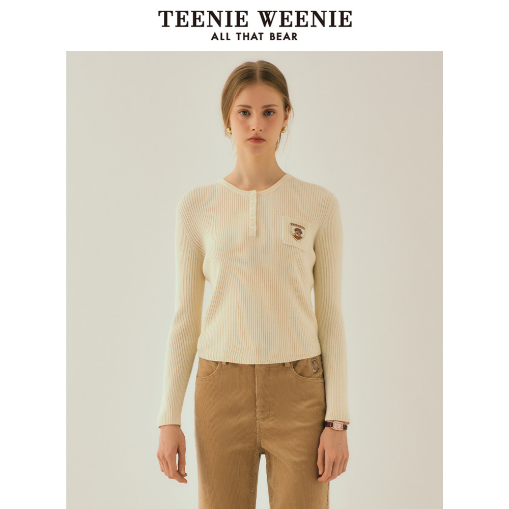 套头肌理感毛衣针织女 亨利领修身 TeenieWeenie小熊奥莱女装 冬装