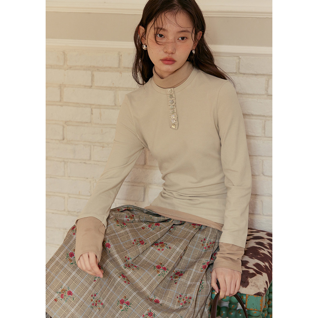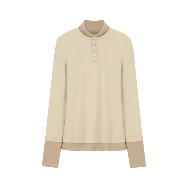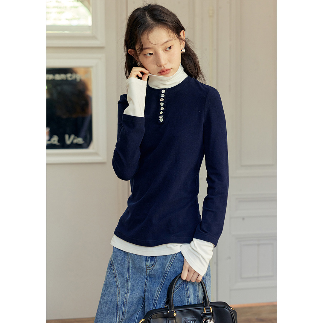 修身 冬季 拼接贝壳扣拼色假两件长袖 女保暖针织衫 打底衫 BLUEerror