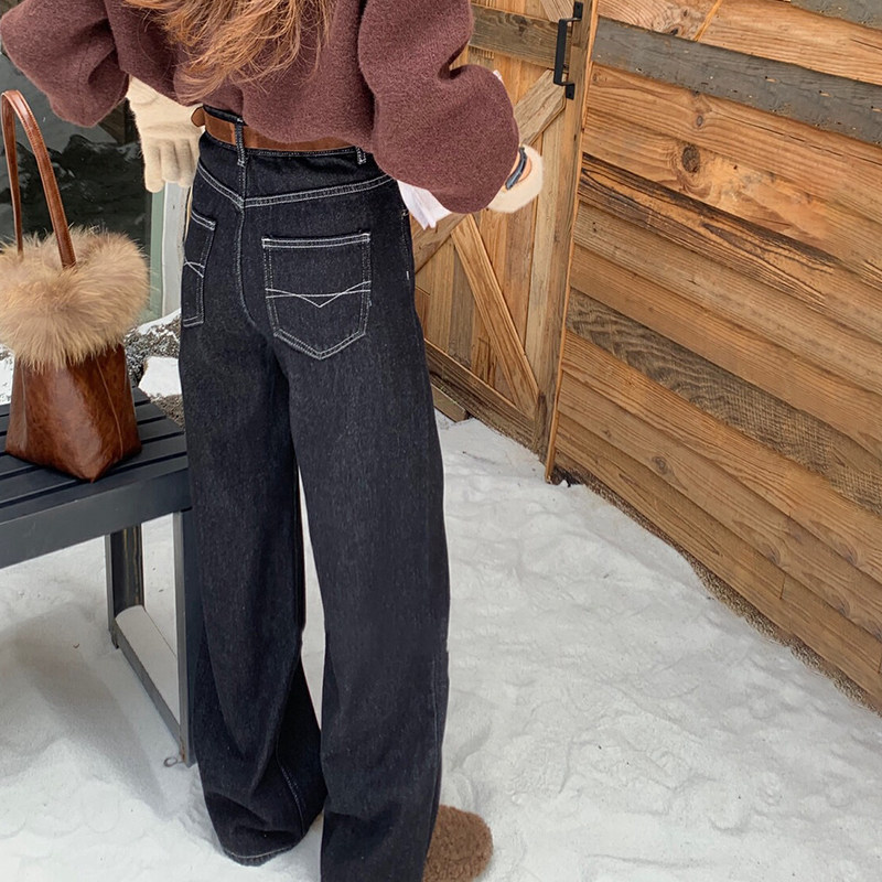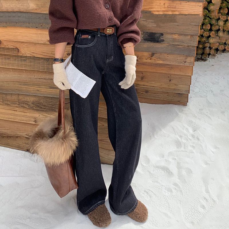 2024冬新款 Jeans阿凡牛A3775加厚绒保暖宽松显瘦女牛仔直筒阔腿裤