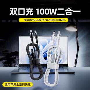 优禄充电线二合一数据线Type 16pro双头100w超级快充pd一拖二ipad平板电脑充电线 C适用于苹果华为iPhone15