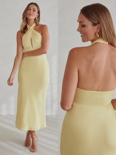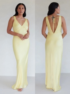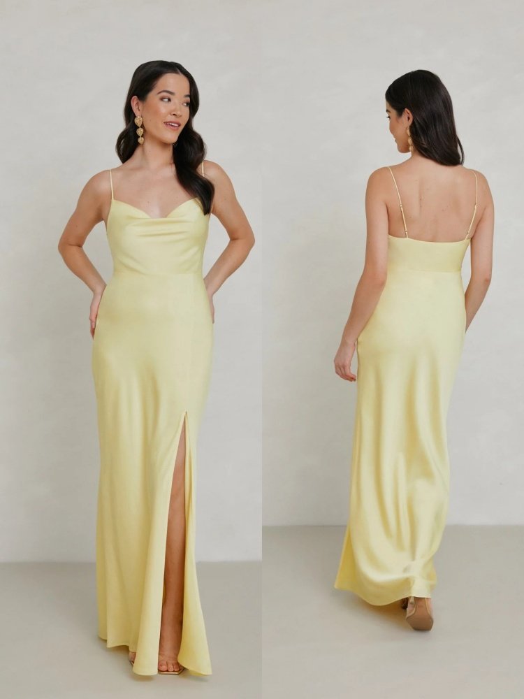 西式 夏天绸面微胖小众高级感姐妹团伴娘裙 黄色伴娘服缎面2024新款