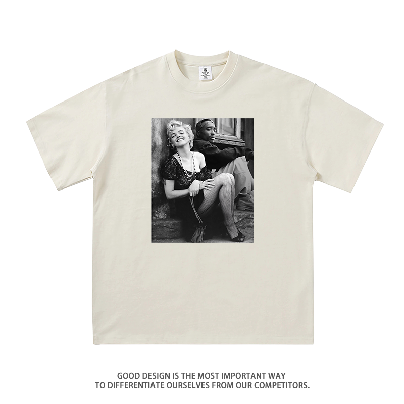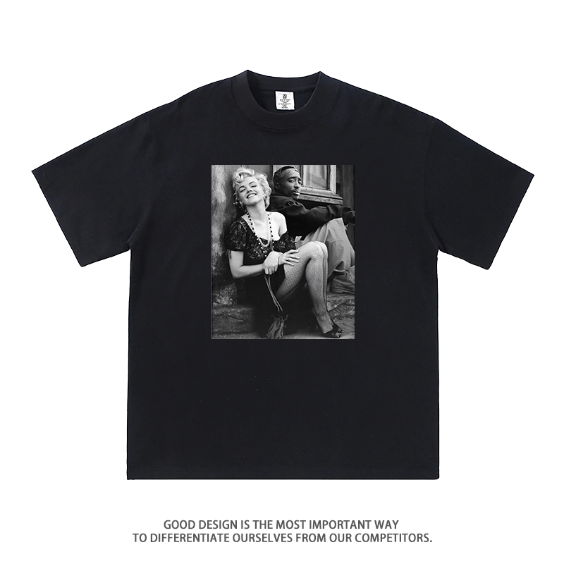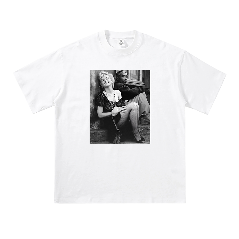 玛丽莲梦露2Pac联名短袖 欧美街头男女休闲宽松潮 t恤嘻哈说唱半袖