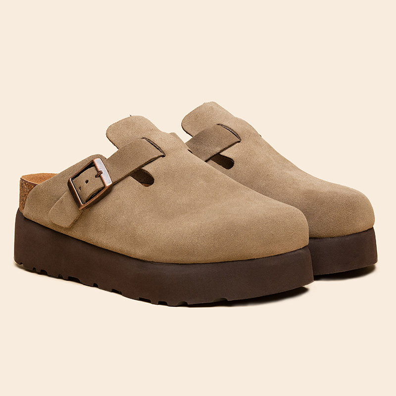 新款 拖鞋 勃肯鞋 厚底增高真皮女鞋 桑坡 半拖情侣包头拖博肯鞋 7厘米