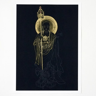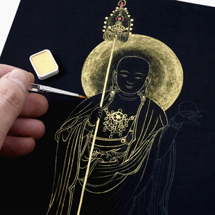 地藏王线描描金画 静心手绘画 佛像涂色画diy填色画