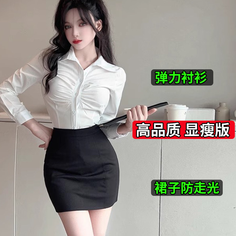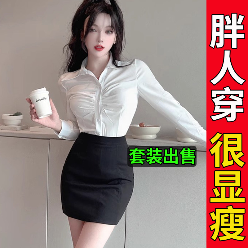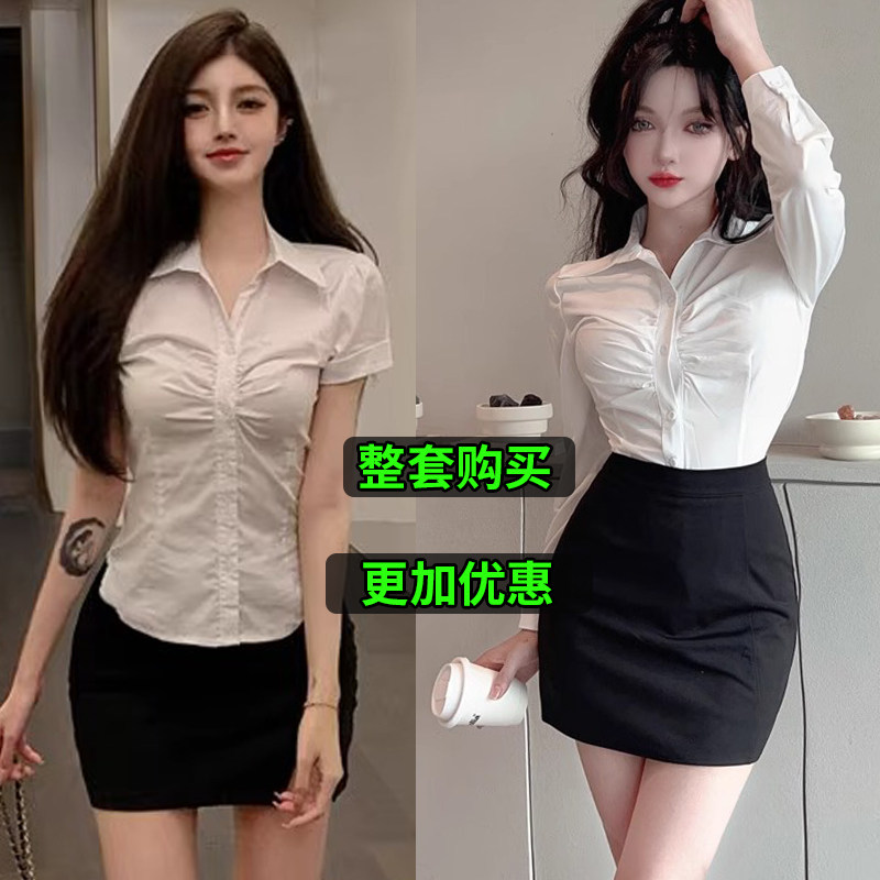 夏JK性感短袖 女职业工作服套装 衬衣秘书OL制服 胖mm收腰白衬衫 大码