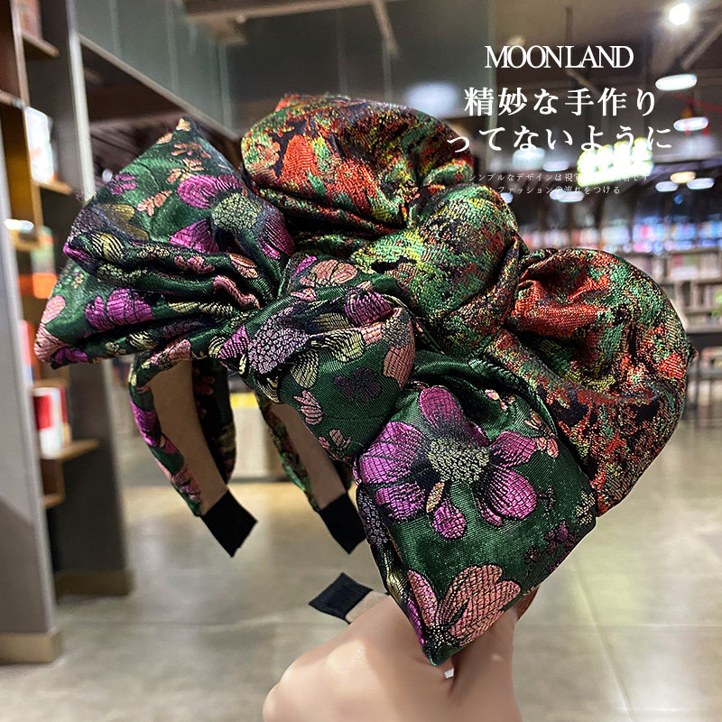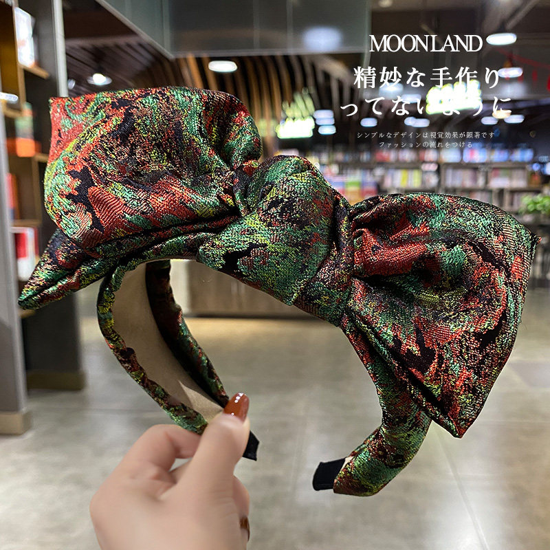 复古高颅顶发饰女法式 典雅渲染抽象印花大蝴蝶结宽边发箍发卡头箍