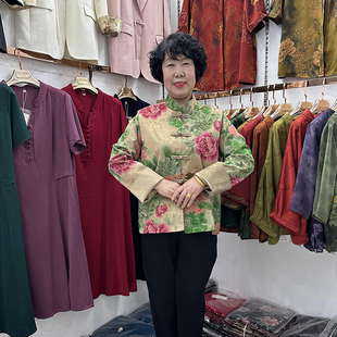 中老年女装 秋冬小花袄奶奶棉服保暖碎花上衣服 棉衣加绒外套妈妈装