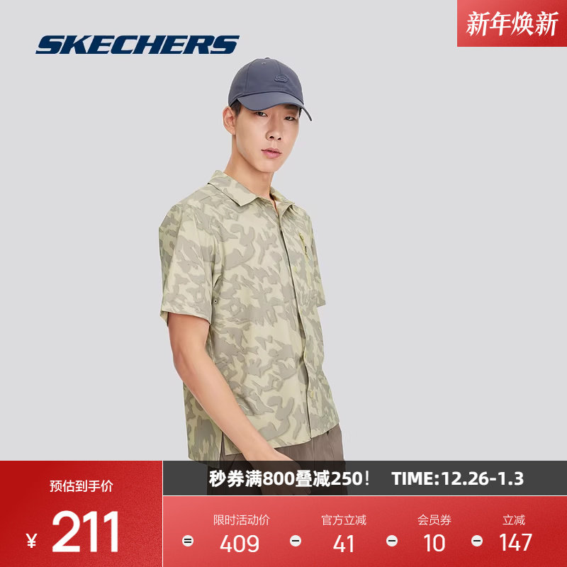 衫 成毅同款 舒适透气运动短袖 polo衫 翻领梭织T恤百搭 斯凯奇男士