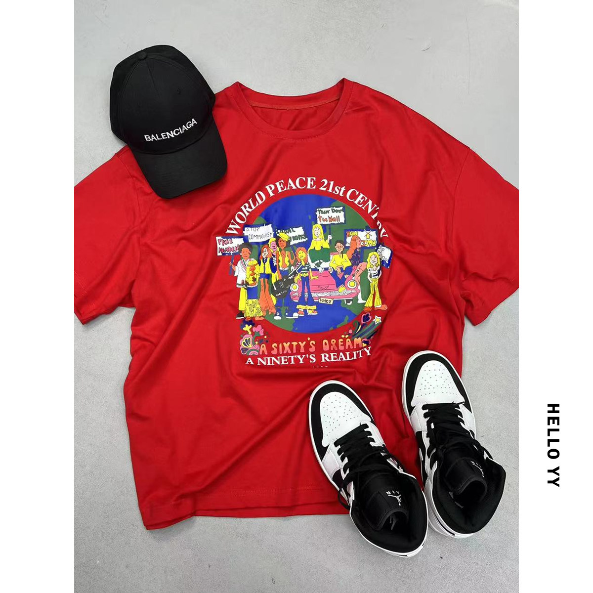 2024年新款 HELLOYY欧美特大码 短袖 摇滚图案宽松t恤女胖mm夏装 女装