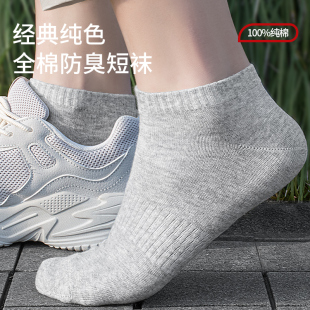 短筒防臭吸汗透气男生运动船袜 100%全棉薄款 浪莎男士 袜子短袜夏季