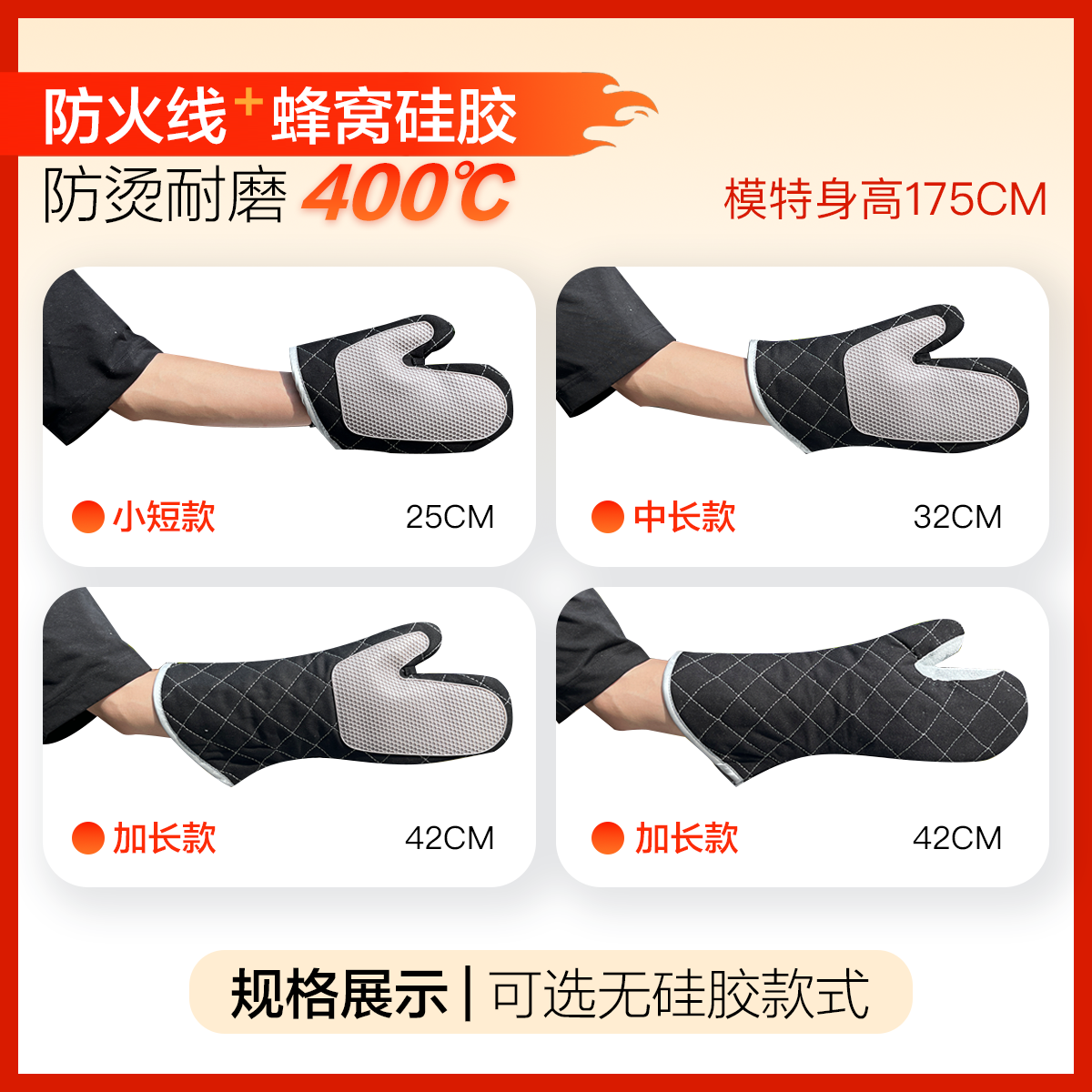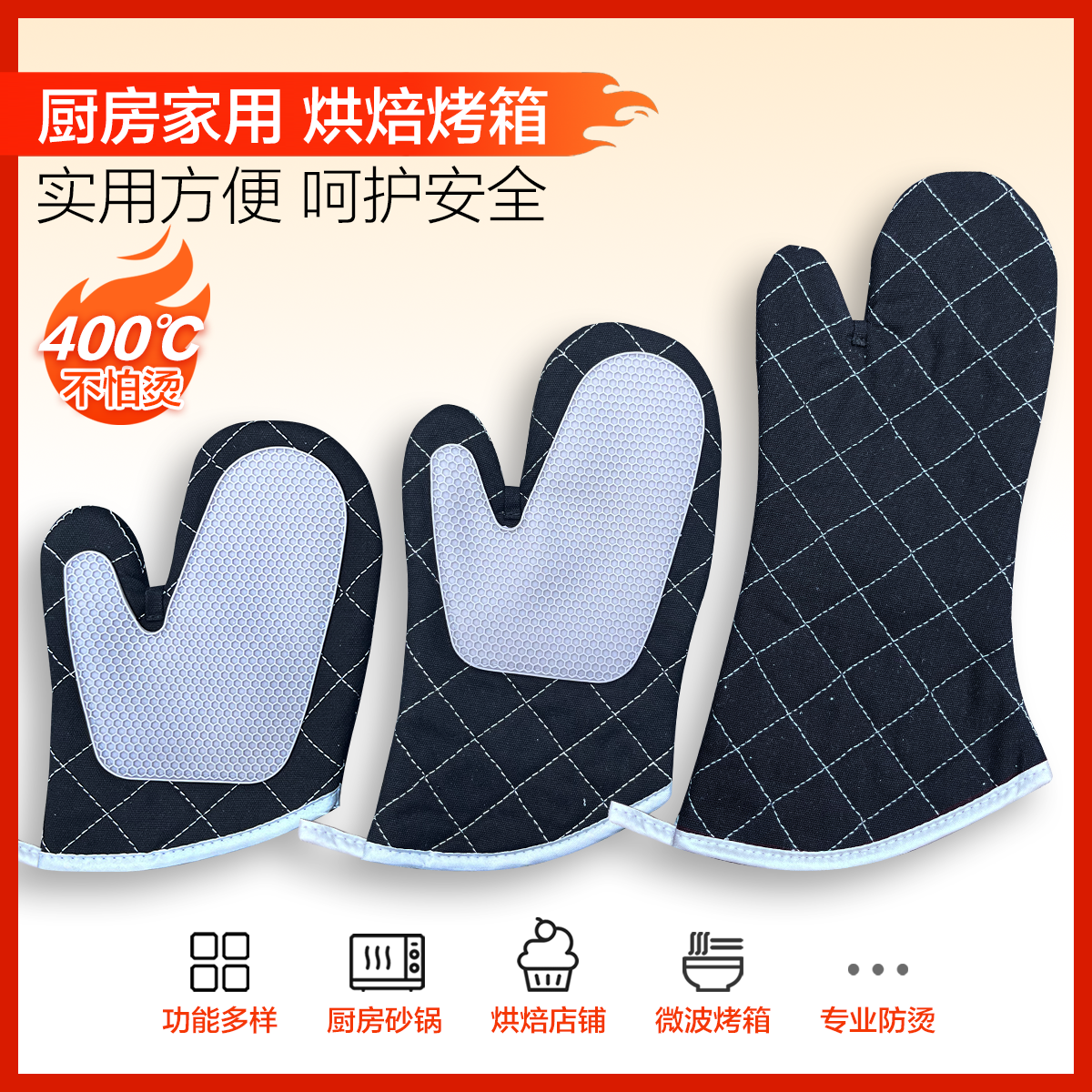 防烫手套隔热加厚硅胶耐高温厨房烤箱专用防滑微波炉烘培烘焙防热