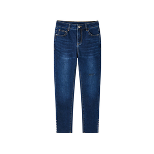 女百搭修身 破洞牛仔小脚裤 弹性休闲裤 尤缇2024春季 新款 TI联名款
