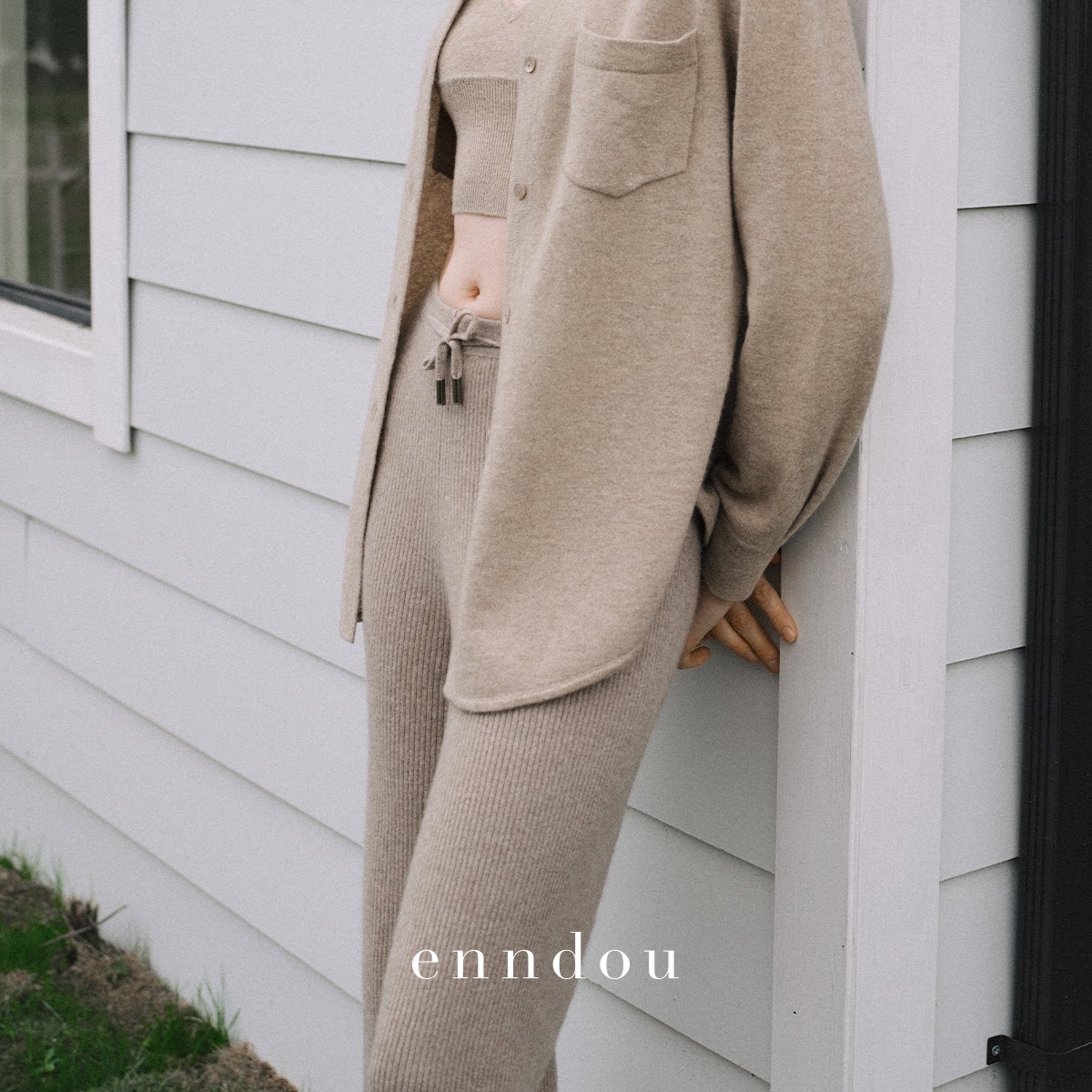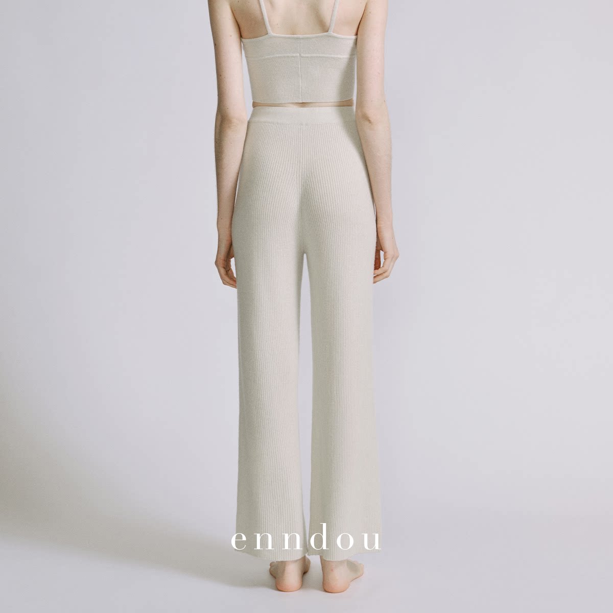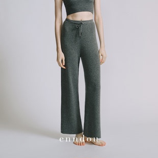 弹力螺纹抽绳长裤 enndou 女直筒裤 羊绒休闲长裤 100%纯羊绒秋冬款