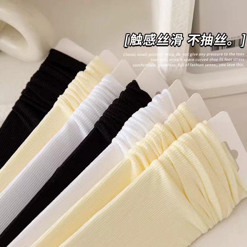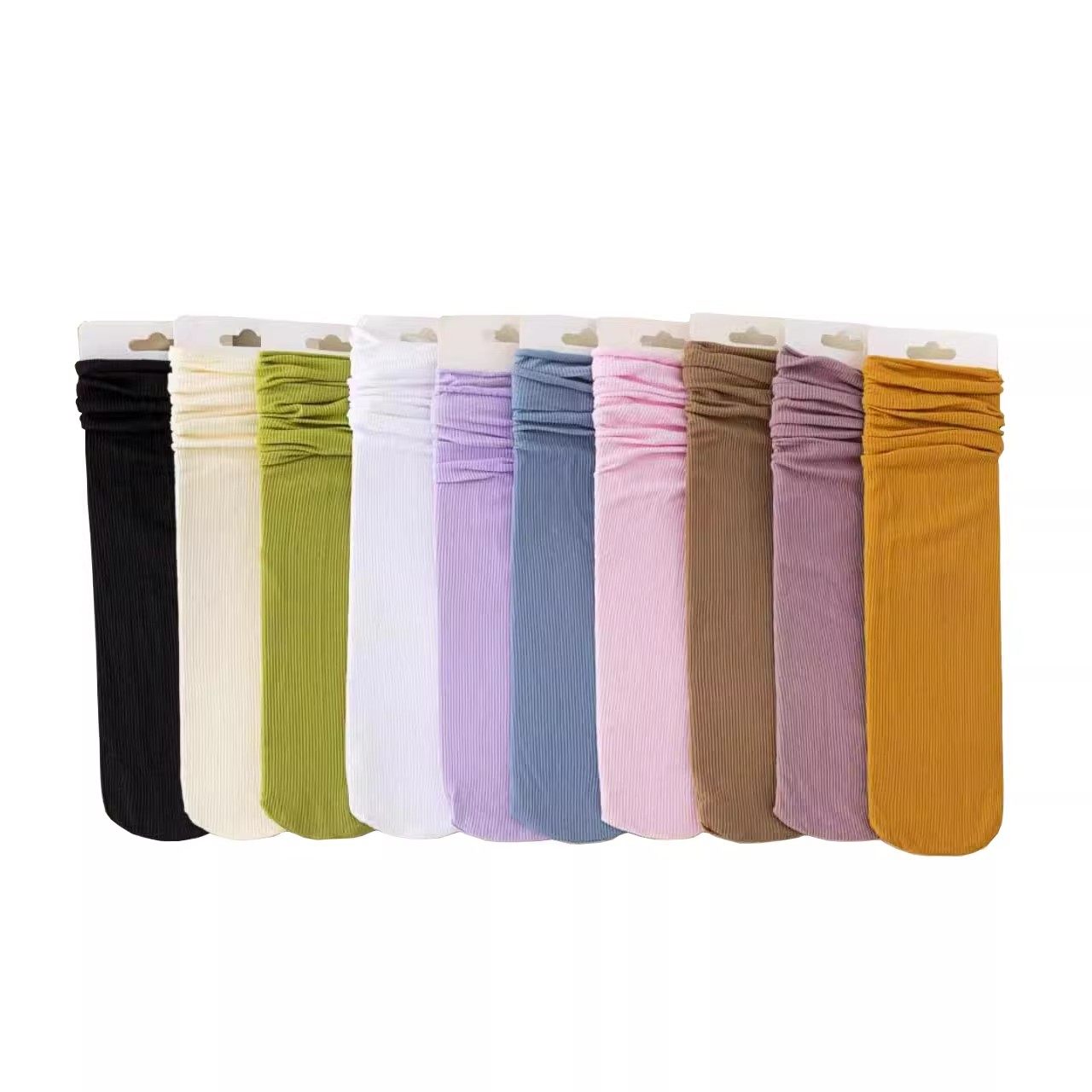 袜子女夏季 中筒袜ik白色小腿冰丝堆堆袜纯色长袜ins潮冰冰袜 薄款