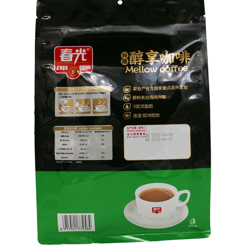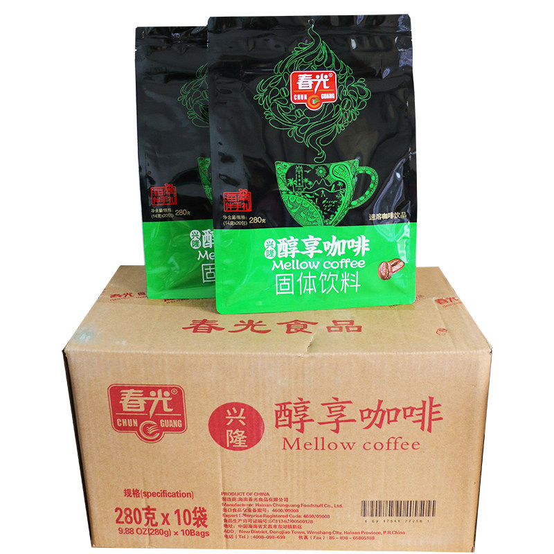 海南特产春光兴隆醇享咖啡280克2袋无蔗糖添加速溶咖啡纯香咖啡粉